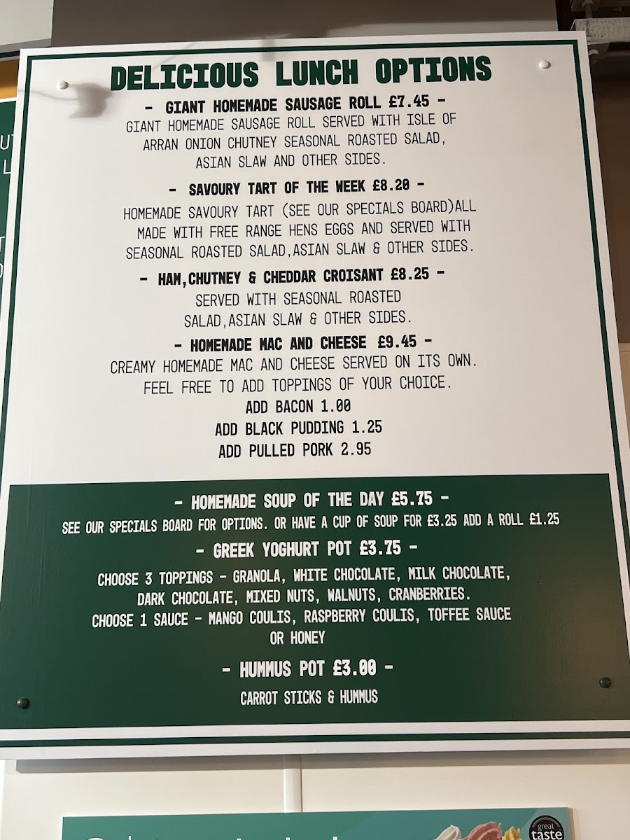 - Lunch: Delight in a Giant Homemade Sausage Roll or the comforting Homemade Mac and Cheese, thoughtfully priced for value and quality.